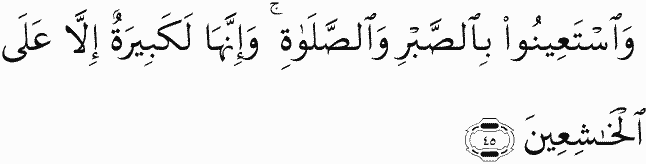 And seek help through patience and prayer, and indeed, it is difficult except for the humbly submissive [to Allah ]