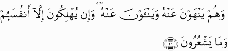 And they prevent [others] from him and are [themselves] remote from him. And they do not destroy except themselves, but they perceive [it] not.
