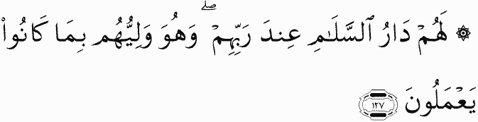 For them will be the Home of Peace with their Lord. And He will be their protecting friend because of what they used to do.