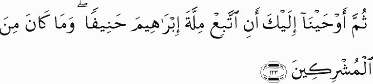 Then We revealed to you, [O Muhammad], to follow the religion of Abraham, inclining toward truth; and he was not of those who associate with Allah .