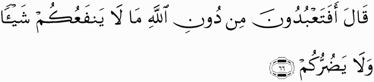 He said, "Then do you worship instead of Allah that which does not benefit you at all or harm you?