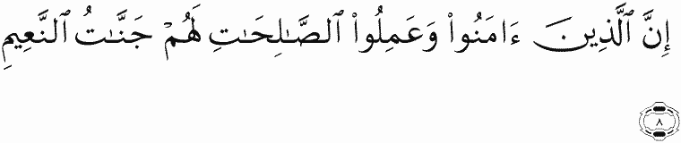 Indeed, those who believe and do righteous deeds - for them are the Gardens of Pleasure.