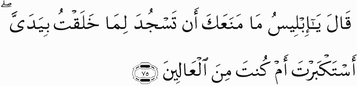 [ Allah ] said, "O Iblees, what prevented you from prostrating to that which I created with My hands? Were you arrogant [then], or were you [already] among the haughty?"