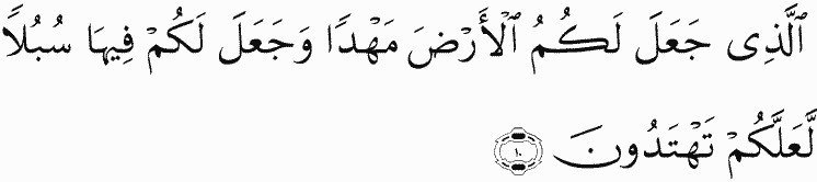 [The one] who has made for you the earth a bed and made for you upon it roads that you might be guided