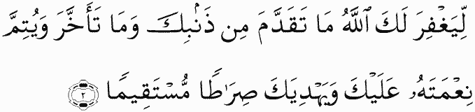 That Allah may forgive for you what preceded of your sin and what will follow and complete His favor upon you and guide you to a straight path
