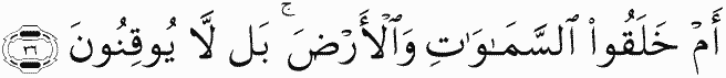 Or did they create the heavens and the earth? Rather, they are not certain.