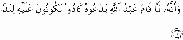 And that when the Servant of Allah stood up supplicating Him, they almost became about him a compacted mass."