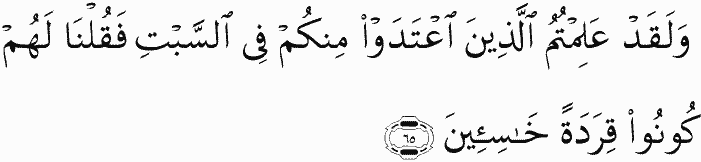 And you had already known about those who transgressed among you concerning the sabbath, and We said to them, "Be apes, despised."