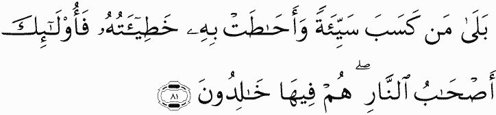 Yes, whoever earns evil and his sin has encompassed him - those are the companions of the Fire; they will abide therein eternally.