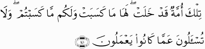 That is a nation which has passed on. It will have [the consequence of] what it earned, and you will have what you have earned. And you will not be asked about what they used to do.