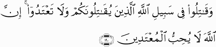 Fight in the way of Allah those who fight you but do not transgress. Indeed. Allah does not like transgressors.