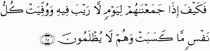 So how will it be when We assemble them for a Day about which there is no doubt? And each soul will be compensated [in full for] what it earned, and they will not be wronged.