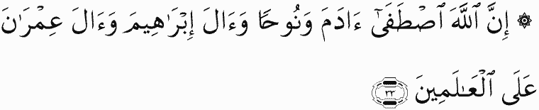 Indeed, Allah chose Adam and Noah and the family of Abraham and the family of 'Imran over the worlds -
