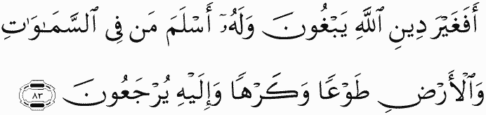 So is it other than the religion of Allah they desire, while to Him have submitted [all] those within the heavens and earth, willingly or by compulsion, and to Him they will be returned?