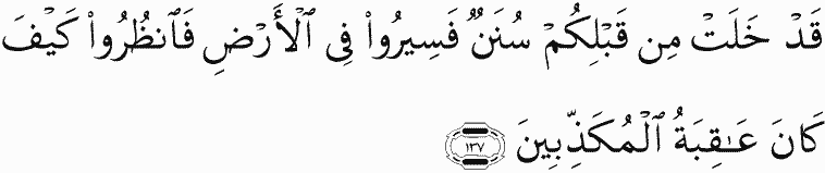 Similar situations [as yours] have passed on before you, so proceed throughout the earth and observe how was the end of those who denied.
