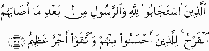 Those [believers] who responded to Allah and the Messenger after injury had struck them. For those who did good among them and feared Allah is a great reward -