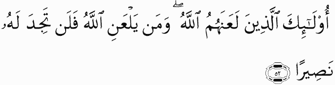 Those are the ones whom Allah has cursed; and he whom Allah curses - never will you find for him a helper.