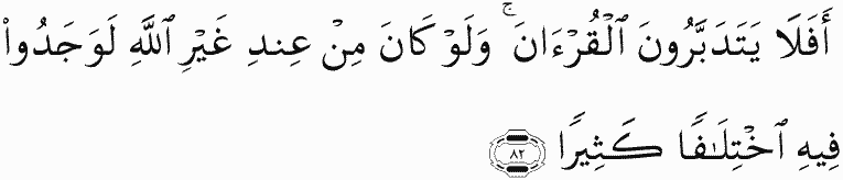Then do they not reflect upon the Qur'an? If it had been from [any] other than Allah , they would have found within it much contradiction.