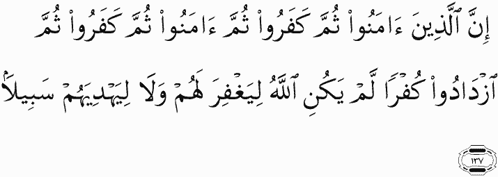 Indeed, those who have believed then disbelieved, then believed, then disbelieved, and then increased in disbelief - never will Allah forgive them, nor will He guide them to a way.