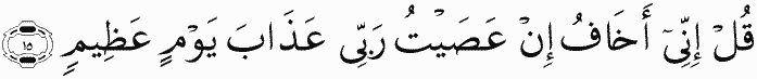 Say, "Indeed I fear, if I should disobey my Lord, the punishment of a tremendous Day."
