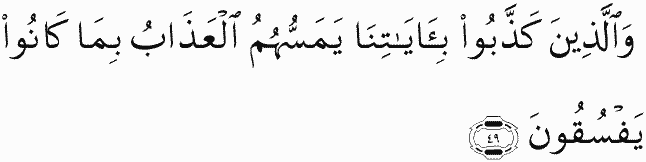 But those who deny Our verses - the punishment will touch them for their defiant disobedience.