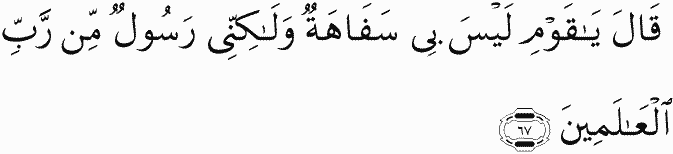 [Hud] said, "O my people, there is not foolishness in me, but I am a messenger from the Lord of the worlds."
