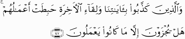 Those who denied Our signs and the meeting of the Hereafter - their deeds have become worthless. Are they recompensed except for what they used to do?