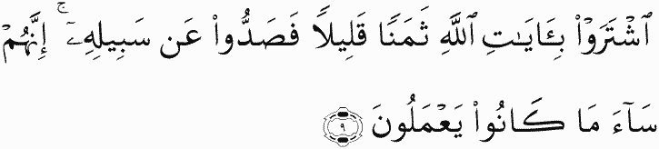 They have exchanged the signs of Allah for a small price and averted [people] from His way. Indeed, it was evil that they were doing.