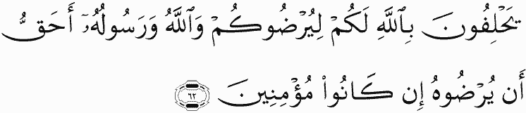 They swear by Allah to you [Muslims] to satisfy you. But Allah and His Messenger are more worthy for them to satisfy, if they should be believers.