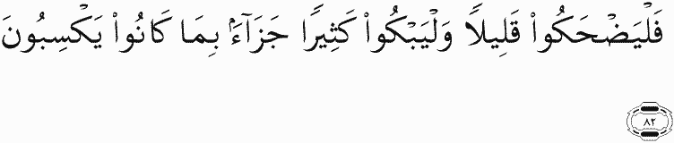 So let them laugh a little and [then] weep much as recompense for what they used to earn.