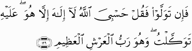 But if they turn away, [O Muhammad], say, "Sufficient for me is Allah ; there is no deity except Him. On Him I have relied, and He is the Lord of the Great Throne."