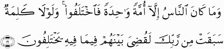 And mankind was not but one community [united in religion], but [then] they differed. And if not for a word that preceded from your Lord, it would have been judged between them [immediately] concerning that over which they differ.
