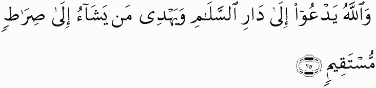 And Allah invites to the Home of Peace and guides whom He wills to a straight path