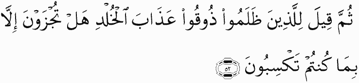 Then it will be said to those who had wronged, "Taste the punishment of eternity; are you being recompensed except for what you used to earn?"