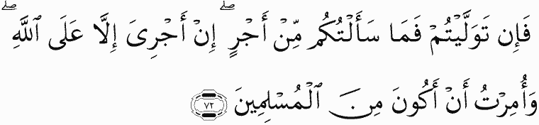 And if you turn away [from my advice] then no payment have I asked of you. My reward is only from Allah , and I have been commanded to be of the Muslims."