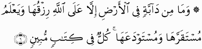 And there is no creature on earth but that upon Allah is its provision, and He knows its place of dwelling and place of storage. All is in a clear register.