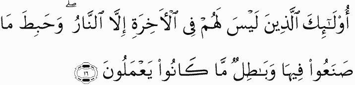Those are the ones for whom there is not in the Hereafter but the Fire. And lost is what they did therein, and worthless is what they used to do.