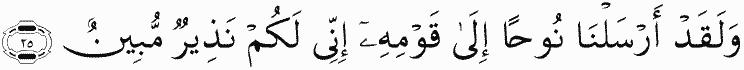 And We had certainly sent Noah to his people, [saying], " Indeed, I am to you a clear warner
