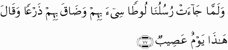 And when Our messengers, [the angels], came to Lot, he was anguished for them and felt for them great discomfort and said, "This is a trying day."
