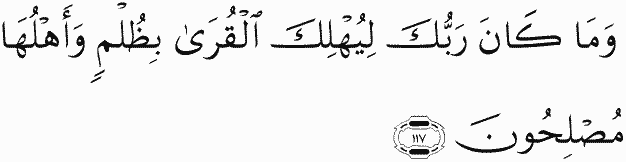 And your Lord would not have destroyed the cities unjustly while their people were reformers.