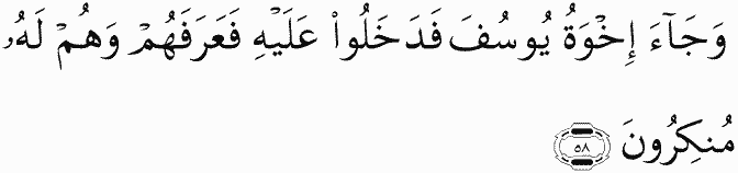 And the brothers of Joseph came [seeking food], and they entered upon him; and he recognized them, but he was to them unknown.
