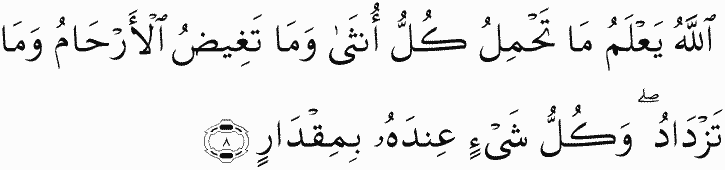 Allah knows what every female carries and what the wombs lose [prematurely] or exceed. And everything with Him is by due measure.
