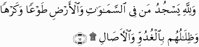 And to Allah prostrates whoever is within the heavens and the earth, willingly or by compulsion, and their shadows [as well] in the mornings and the afternoons.