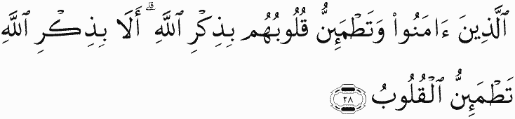 Those who have believed and whose hearts are assured by the remembrance of Allah . Unquestionably, by the remembrance of Allah hearts are assured."