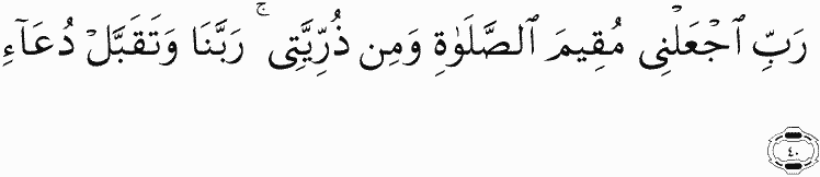 My Lord, make me an establisher of prayer, and [many] from my descendants. Our Lord, and accept my supplication.