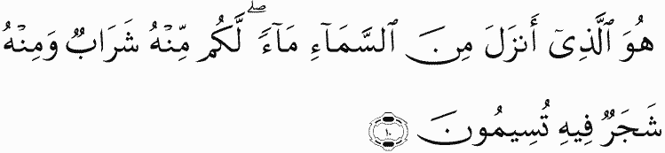 It is He who sends down rain from the sky; from it is drink and from it is foliage in which you pasture [animals].
