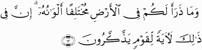 And [He has subjected] whatever He multiplied for you on the earth of varying colors. Indeed in that is a sign for a people who remember.