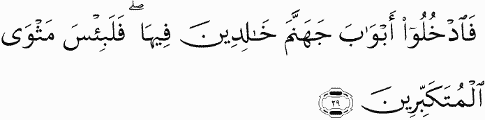 So enter the gates of Hell to abide eternally therein, and how wretched is the residence of the arrogant.