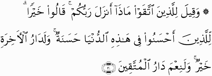 And it will be said to those who feared Allah , "What did your Lord send down?" They will say, "[That which is] good." For those who do good in this world is good; and the home of the Hereafter is better. And how excellent is the home of the righteous -
