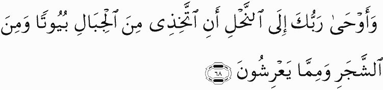 And your Lord inspired to the bee, "Take for yourself among the mountains, houses, and among the trees and [in] that which they construct.